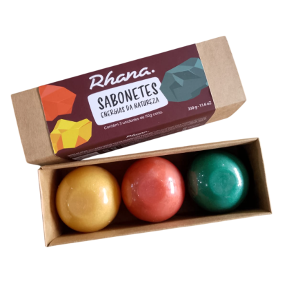 - O sabonete Rubi, com mica vermelha, inspira energia de proteção e coragem.